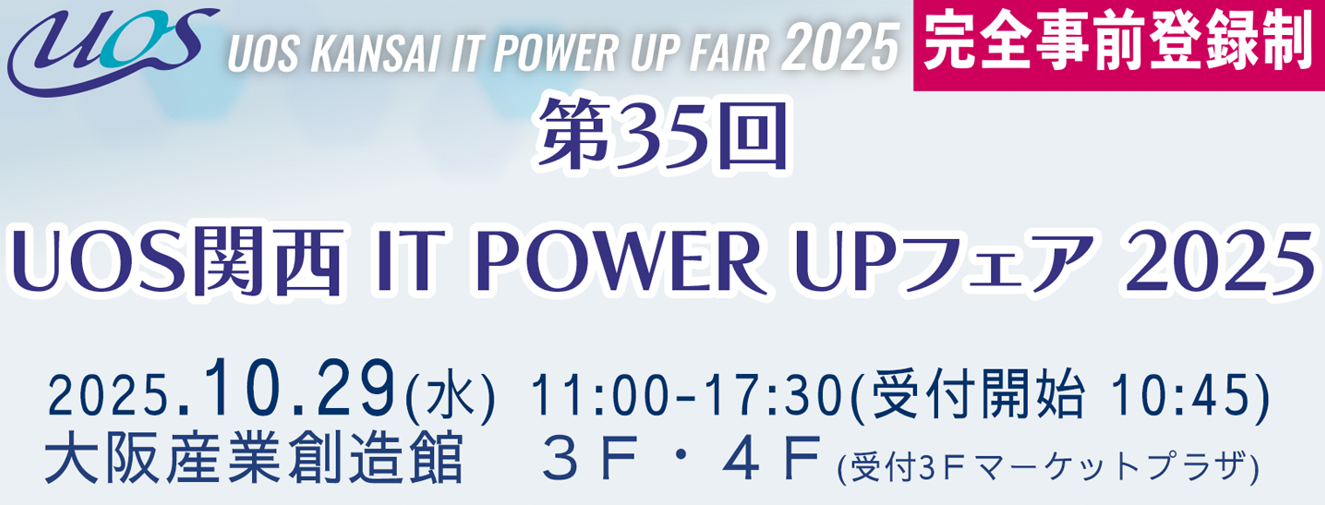 このたび、弊社は 第35回 ユーオス関西 IT POWER UP フェア2025 に出展いたします。